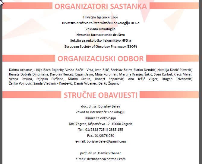 08:20 – 09:10 Novosti u bazičnim istraživanjima u onkologiji / Z. Dembić, K. Pavelić